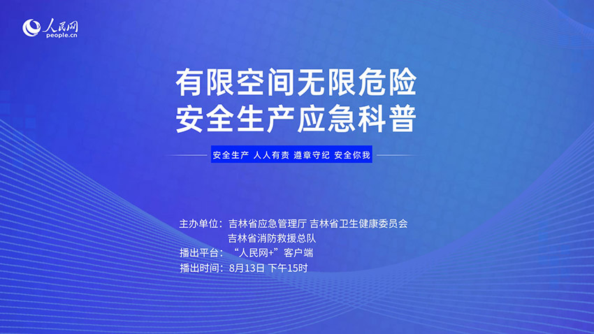 8月13日15:00,由人民網聯合吉林省應急管理廳、吉林省衛生健康委員會、吉林省消防救援總隊策劃推出的《有限空間無限危險 安全生產應急科普》直播節目來了,讓我們共同學習什么是有限空間?有限空間作業的風險有哪些?如何實施救援。