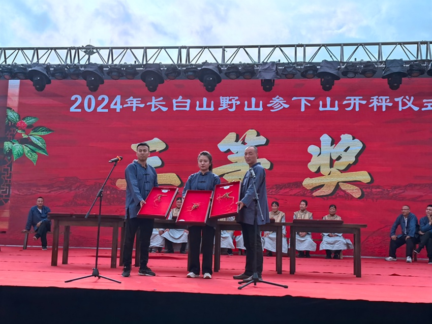 人民網白山9月1日電 (記者馬俊華)長白山下秀美山城,參鄉恰遇豐收之時。9月1日,2024年長白山野山參下山開秤儀式在撫松縣文化廣場舉行。