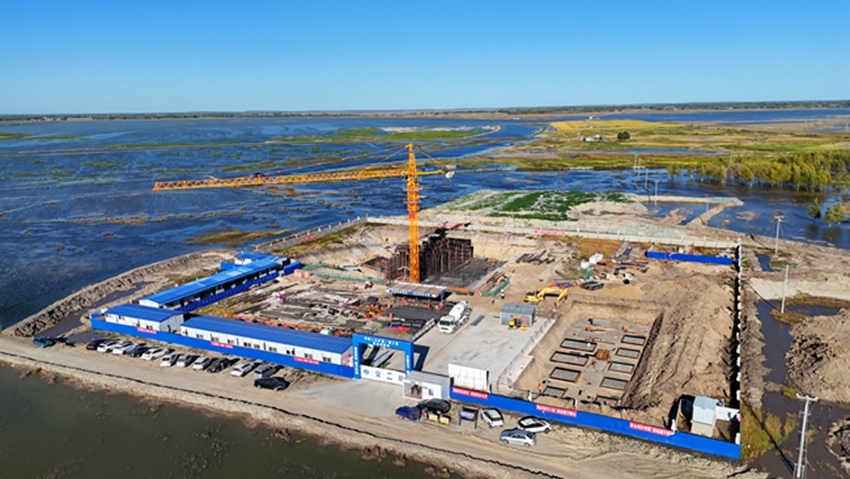 在施工現場,中交二航局引嫩入白項目負責人談強介紹道:“截至目前,項目中的黑魚泡泵站主體工程基礎底板已經全部澆筑完成,攔污柵及導流墩的第一層澆筑也已經順利完成。我們累計完成了鋼筋綁扎260余噸,混凝土澆筑2100余立方米。黑魚泡泵站主體工程預計將在10月底完成封頂?,F在,我們的項目管理團隊正在搶抓東北地區施工的‘黃金期’,全力朝著節點目標沖刺?!?/p>