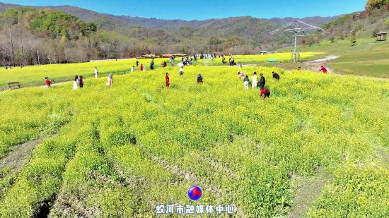 蛟河幽芳谷油菜花海吸引眾多游客打卡拍照