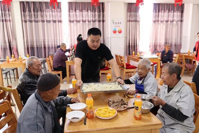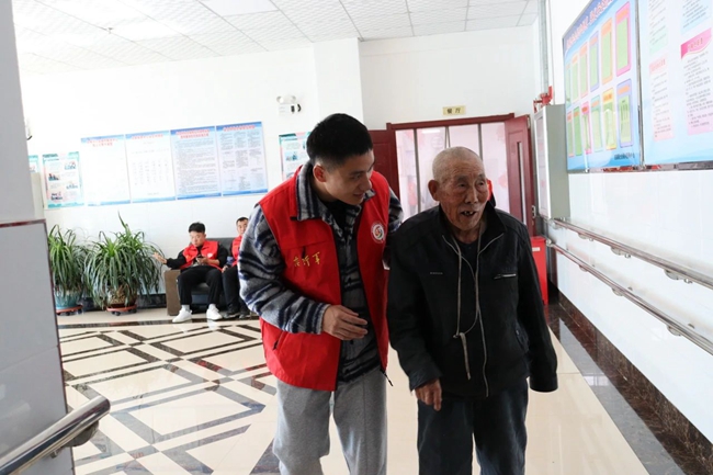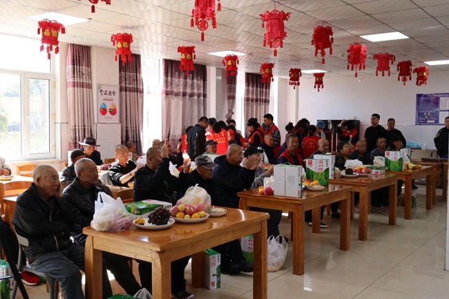 志愿者們為老人分發水果、牛奶等慰問品,擦拭食堂玻璃,清掃庭院落葉,打掃老人居室,為老人們包餃子,表演文藝節目,陪伴老人們度過喜慶祥和、溫情暖心的重陽節。
