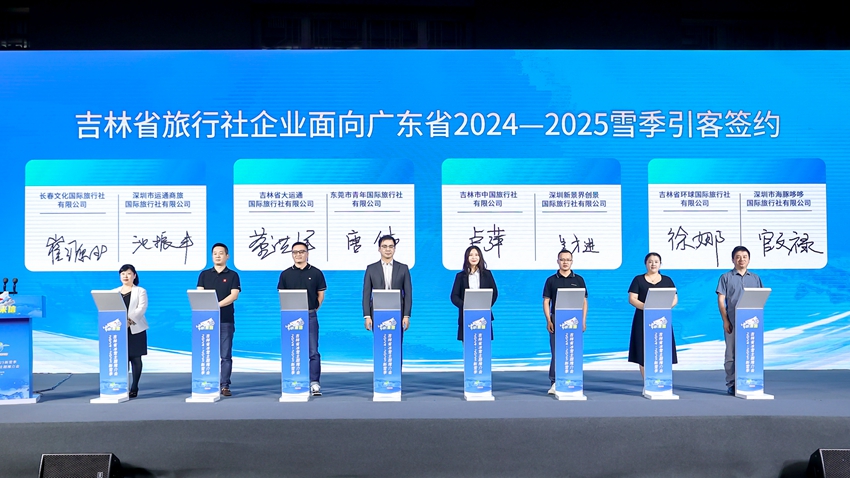 冰雪跨越千里,推介會架起兩地文旅合作的橋梁?,F場,吉粵兩省八家企業簽署“吉林省旅行社企業面向廣東省2024—2025雪季引客協議”,并表示,將持續深化兩地合作,共謀繁榮發展,促進互利共贏。