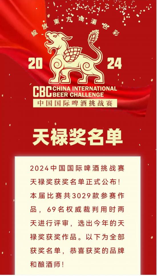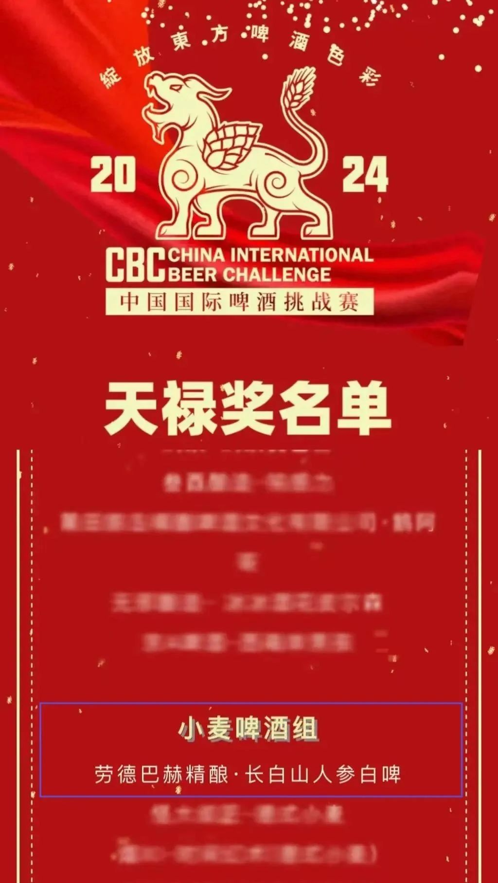 10月22日,2024中國國際啤酒挑戰賽獲獎名單公布,勞德巴赫精釀長白山人參白啤在3029款啤酒中脫穎而出,斬獲二星天祿獎(等同于商業組銀獎)。