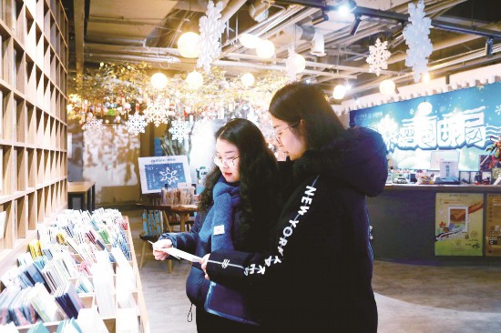 隨著新雪季到來,長春各文旅景點也紛紛推出冰雪主題的文旅產品,為游客帶來更加豐富多彩的冰雪文化體驗。圖為市民在這有山打造的“雪國郵局”里挑選心儀的文創產品。 本報記者 李姣月 攝