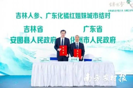 大會現場舉行了“吉林人參、廣東化橘紅姐妹城市結對”簽約儀式、“吉粵比翼齊飛”吉粵企業南北結對合作儀式,吉林省安圖縣、廣東省化州市率先開展友好結對,先行探路,就農產品縣域營銷結對合作;一批吉粵人參、化橘紅生力軍企業實現強強聯手,做大朋友圈。