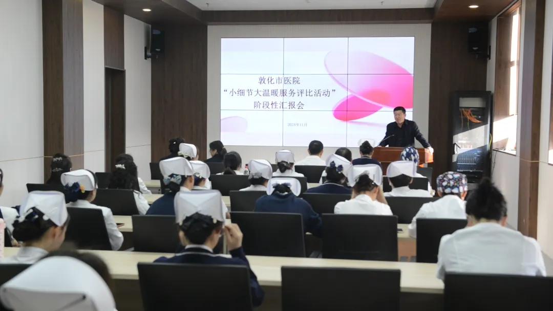 為了總結活動開展成效,評選出優秀項目予以表彰,2024年11月29日下午,敦化市醫院在七樓小會議室召開 “小細節大溫暖服務評比活動” 階段性匯報會。會議由黨政辦公室主任孫偉納主持。
