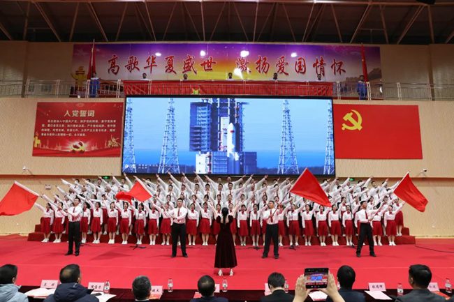 文藝匯演共分為《崢嶸歲月》《紅心向黨》《薪火相傳》《走向復興》四個篇章。最后,在全場共同合唱《歌唱祖國》的歌聲中,本次文藝匯演落下了帷幕。