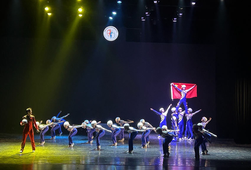 學校副校長武紅軍出席展演活動。體育藝術學院黨總支書記徐文峰擔任領隊,帶領9名教師,93名學生參賽。通過大家的團結協作,最終,同學們以精彩的表演,榮獲2項“金獎”和2項“銀獎”,創歷史最佳成績。其中,劉洋、徐文峰、于函鷺編創的作品《越》獲中國舞項目“金獎”;王賀龍、李嬌、李文濤編創的作品《鑄劍為犁》獲國際標準舞項目“金獎”;張文靜、趙斯文、王艷威編創的作品《青絲繡》獲中國舞項目“銀獎”;冀曉靜、吳東璇編創的作品《饋贈人間以芬芳》獲國際標準舞項目“銀獎”。同時,作品《越》參加了12月12日頒獎晚會的教育教學成果展演,獲得專家好評。