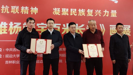 在畫展開幕式上,楊靖宇之孫馬繼志、《人民英雄楊靖宇》百米組畫主創人、畫家趙明仁受聘為“東北抗聯精神宣講專家”。與會領導、嘉賓、師生共同參觀了畫展。在講解員的深情講解中,共同重溫了那段白山黑水間寫下的不朽史詩。
