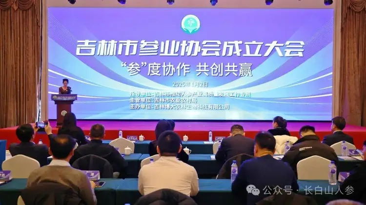 1月2日,吉林市參業協會籌備成立大會在吉林市召開,標志著吉林市人參產業發展邁出了新的重要步伐,吉林省推動人參產業高質量發展工作專班、吉林省農業農村廳園藝處副處長尹寶靖,吉林市人民政府副市長劉向濤,吉林農業科技學院副校長尹柏雙,市政府副秘書長杜英志,市人參專班班長、農業農村局局長潘明,吉林市科協副主席李佳玲,市委宣傳部三級調研員富強,市工信局副局長王洪巖,市科技局副局長李善鋒,市市場監管局副局長姚偉,市民政局社會組織管理局局長宋應學,市商務局副局長車永光,市林業局副局長張建成,中國農業科學院特產研究所研究員關一鳴,吉林醫藥學院社會服務處處長高輝,中國銀行吉林市分行副行長付雷等相關政府部門、大專院校、科研院所、金融機構的領導,以及參業企業等齊聚一堂,共同見證了這一重要時刻。