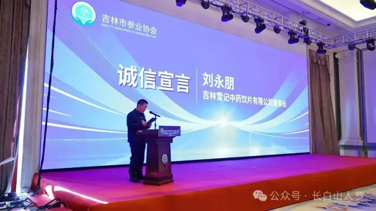 吉林市參業協會副會長、吉林雪記中藥飲片有限公司董事長劉永朋代表協會向全體會員及吉林市人參企業發出誠信倡議,呼吁人參企業以誠信為核心,從保證人參品質、引領科技創新、加強“長白山人參”品牌建設等方面開展深入交流合作。