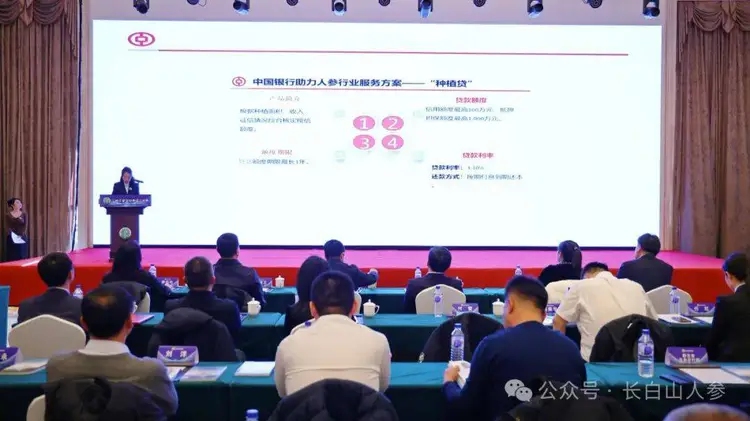 中國銀行永吉支行副行長張路昶宣介了《金融服務“參”發展,中國銀行助力人參行業服務方案》。