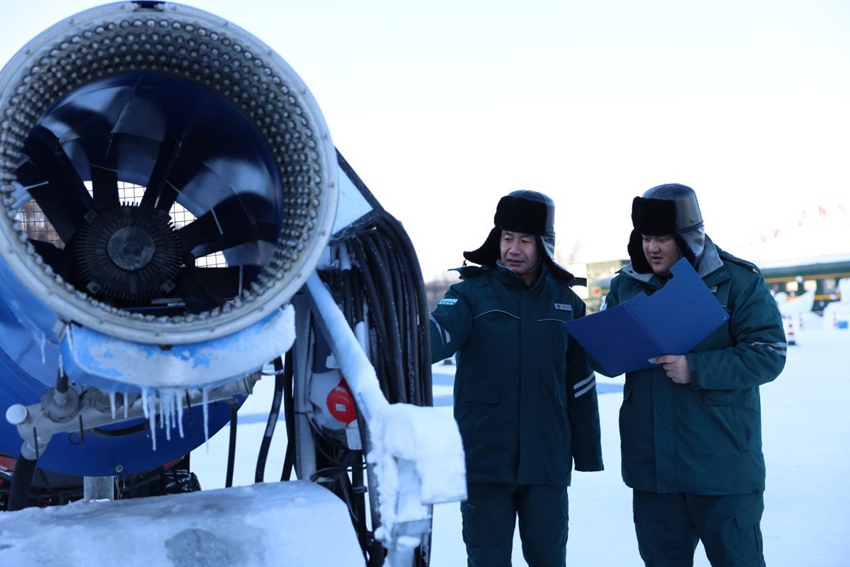 1月3日,國網長春供電公司員工正在檢查造雪機線路設備運行情況。王新棣 攝