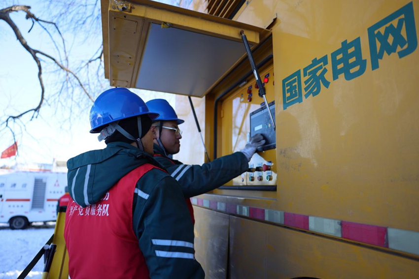 1月3日,國網長春供電公司員工正在檢查不間斷應急電源車的運行情況。王新棣 攝