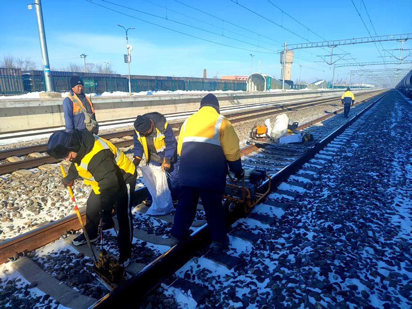 春節期間,受低溫天氣和降雪影響,白城工務段通榆線路車間管內平齊線凍害變化較大,為確保春運期間線路設備安全,這個車間大年初四組織15名職工,成立凍害整治突擊隊,對平齊線260公里至270公里、283公里至288公里線路凍害進行集中整治。