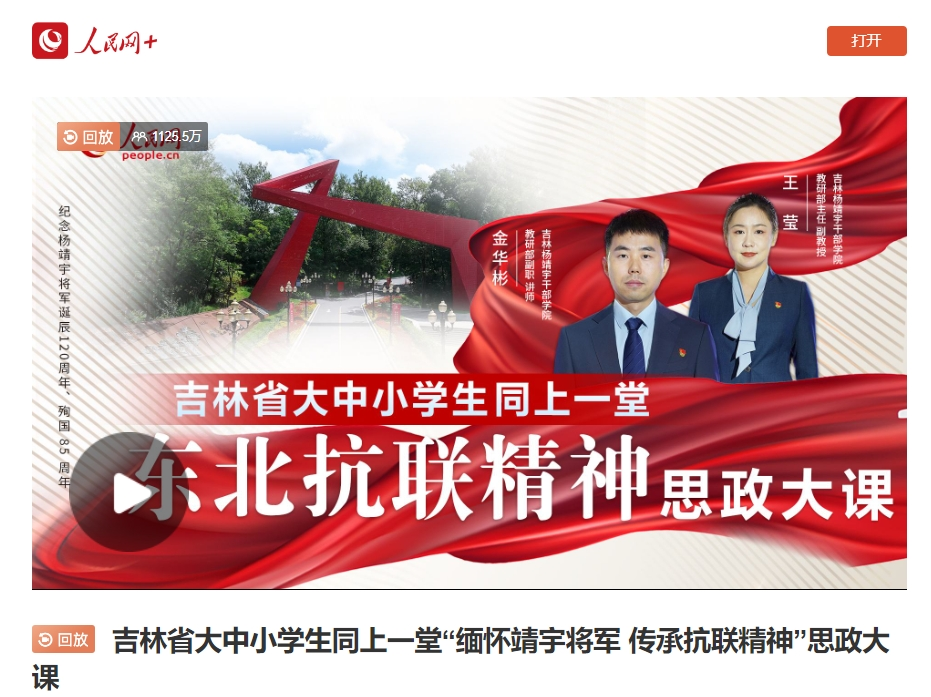 這場思政大課以直播的形式在“人民網+”客戶端開講,人民網吉林頻道PC端、人民網吉林視頻號、人民網吉林抖音號同步進行,吉林省大中小學生積極參與,反響熱烈,直播課程在線人數達到1200余萬人次?!锻弦惶谩熬拺丫赣顚④?傳承抗聯精神”思政大課開講!》稿件被重點范圍網站在雙首頁要聞區推送。