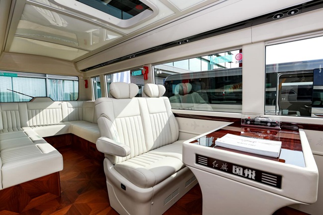 紅旗國悅全車搭載雙層靜音玻璃,車身各空腔填充原生吸音棉,運用電子硅油離合器、自主靜音輪胎等40多項隔音降噪技術,打造心靜神凝的乘車環境??臻g方面,紅旗國悅提供17、19、20、23座位的多樣化布局,實現同級領先的空間設計;配置一體式座椅、可一鍵投屏的折疊電視,折疊秘書桌、高效空調系統,人性化辦公設備隨處可享,充分滿足出行途中的辦公、匯報需求……