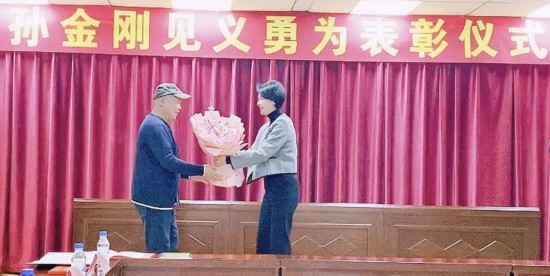 表彰儀式上, 白山市公安局政治部副主任李旭東為孫金剛頒發“白山市見義勇為優秀退役軍人”證書及慰問金,表彰其英勇無畏的軍人本色。 渾江區委常委、宣傳部部長英寶慶為孫金剛授予“渾江好人”證書,彰顯其善行義舉對社會風尚的引領作用。白山商會聯合黨委書記于春天向孫金剛頒發獎金,體現社會各界對英雄的尊崇與支持 。白山市退役軍人事務局黨組書記、局長蓋莉莉在講話中強調,孫金剛的事跡是“退役不褪色”的生動寫照,號召退役軍人以他為榜樣,永葆“若有戰、召必回”的信念,在基層治理、搶險救災中續寫榮光,為白山市高質量發展貢獻退役軍人力量。