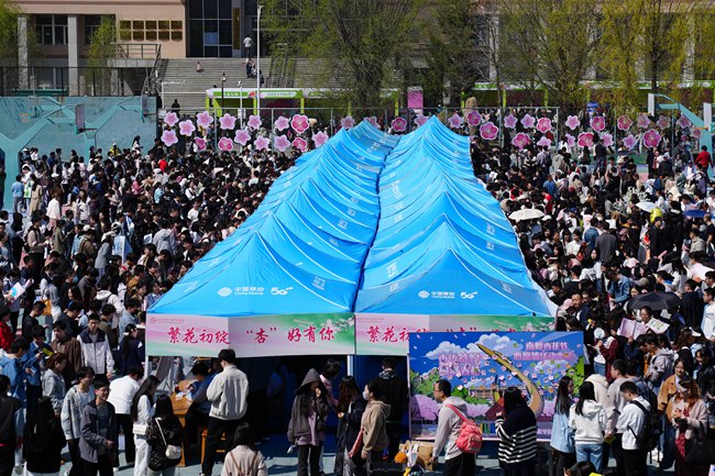 多年來,吉林大學以杏花節為“媒”,不斷拓展賞花的消費場景,全力打造賞花文旅盛宴。在本屆杏花節期間,從“漫步杏林·徜徉花?!苯〔阶?,到“杏蕊點妝 春拂笑靨”杏花妝DIY活動,再到“智繪杏韻 識景成畫”AI智合成像,一個個以杏花為底色的活動,讓每一位到校賞花的游客在花香中品味文化韻味,留下春日最美好回憶。