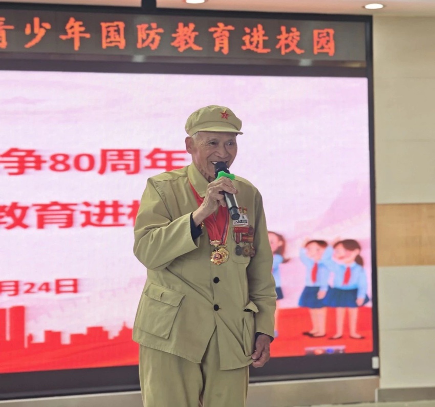 活動現場,93歲抗戰老兵勞道賢走上講臺,深情講述了自己親身經歷的烽火歲月,師生們用熱烈掌聲向老兵表達崇高敬意。這種以生命歷程為教材的傳承方式,讓青少年直觀感受到今天幸福生活的來之不易,更加激發了孩子們刻苦學習,長大后為國防建設貢獻力量的熱情,正如光華小學四年級學生李雨桐所說:“以前覺得英雄很遠,現在聽爺爺講他們的故事,就像發生在身邊一樣?!?/p>