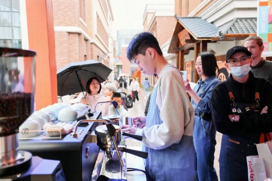 走進“啡必要狂歡·咖啡市集”,這里匯集了20余家精品咖啡攤位,濃郁的咖啡香氣瞬間讓人有種“來一杯”的沖動,不自覺地走到攤位前品嘗一番。五味子養生茶、好柿之徒、橙C美式……眾多口味讓游客大呼過癮、回味無窮。