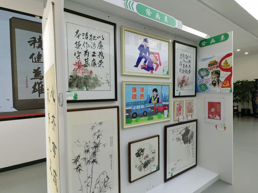 步入展廳,一幅幅丹青墨寶與創意裝置交相輝映。此次巡回展以“清風吉高”為主題,精心挑選了集團干部職工創作的104幅作品,其中書法作品45幅、繪畫作品35幅、剪紙作品13幅、創意作品11幅。這些作品形式多樣、內涵豐富,通過名言佳句、真草隸篆、山水花鳥等多種元素,從不同視角對廉潔理念進行了全方位、多層次的詮釋和倡導,充分展現了吉高集團廉潔文化的深刻內涵,傳遞出崇廉尚潔的堅定價值理念。