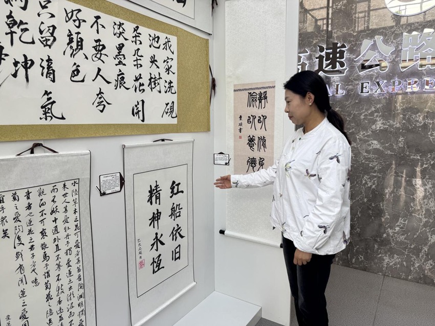吉高集團辦公室文書孫媛超在自己創作的《紅船依舊 精神永恒》書法作品前感慨:“每次重溫中央八項規定精神,都像回到18年前初入交通行業時的初心?!?/p>