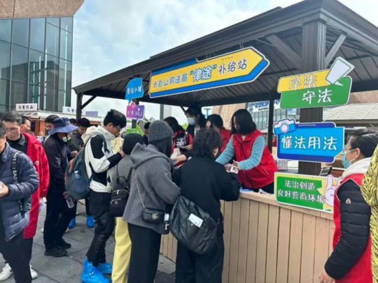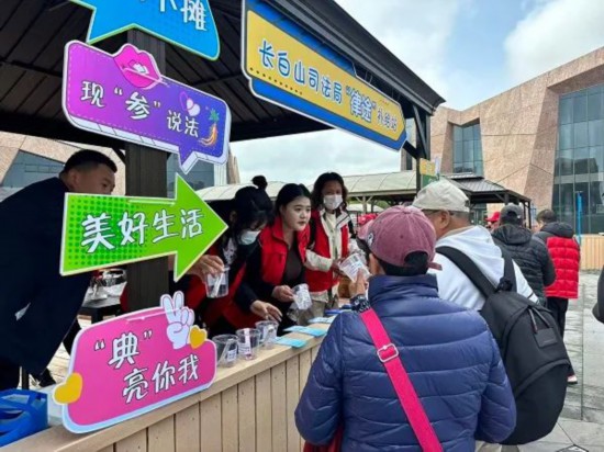 今年5月是第五個“民法典宣傳月”,5月21日,長白山司法局緊扣長白山旅游發展趨勢,選取長白山本土企業生產的特色參蜜,結合法治元素制作了普法宣傳品,在長白山北景區集散中心設立了“律途”補給站,通過趣味互動、法律咨詢等形式,為游客帶來了全新“打卡式”普法體驗。
