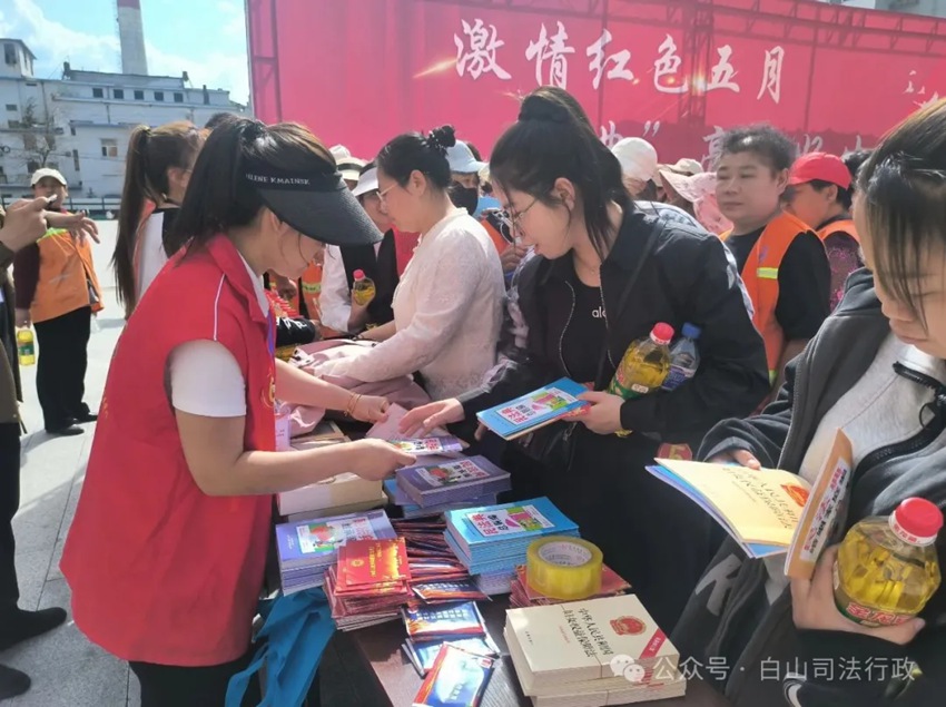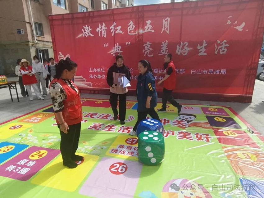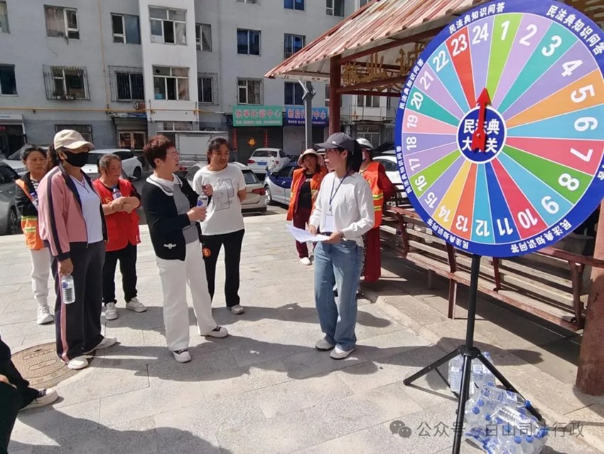 為深入踐行“民法典宣傳月”活動要求,推動法治精神融入基層治理,5月23日下午,白山市司法局攜手白山市總工會、白山市委社會工作部、白山市民政局以“激情紅色五月,‘典’亮美好生活”為主題走進渾江區新建街道向江社區開展“民法典進社區”普法宣傳活動,轄區70余名女職工、女環衛工等一線勞動者參與,通過“聽得懂、用得上”的普法形式,為基層女性送上法治“護身符”。