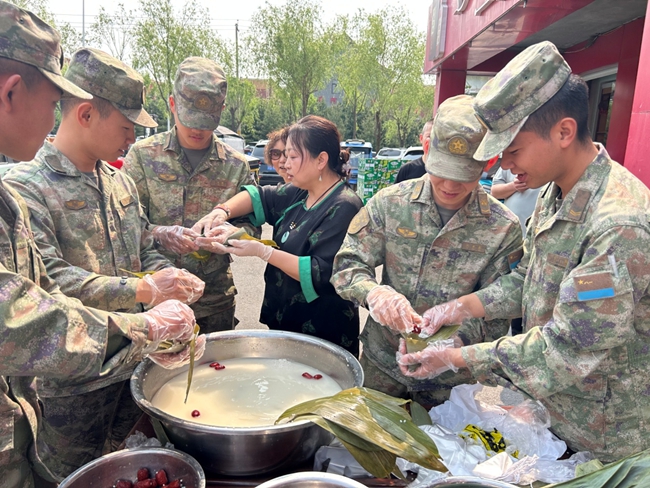 端午佳節,粽葉飄香。為傳承中華優秀傳統文化,弘揚擁軍優屬、擁政愛民的光榮傳統,5月29日,遼源市東豐縣團縣委、縣退役軍人事務局、吉林銀行遼源東豐支行、駐東豐某部隊、福鹿街道府南社區開展“濃情端午,粽享歡樂”雙擁共建活動,與轄區群眾共迎“我們的節日·端午”,共敘軍民魚水深情。