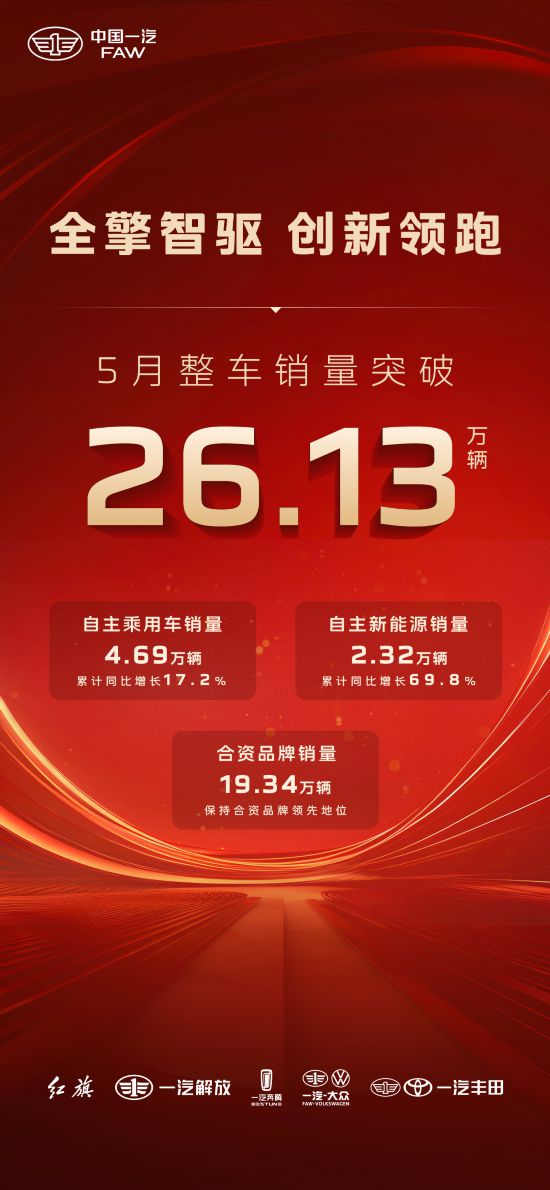 全矩陣協同發力,中國一汽5月銷量突破26.13萬輛