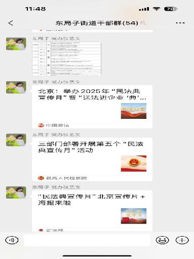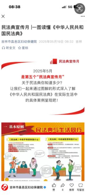 在“民法典宣傳月”期間,充分發揮新媒體優勢,在“吉林昌邑司法”微信公眾號設置民法典宣傳月專欄,積極報道各單位開展的民法典宣傳活動信息。各單位微信公眾號、社區微信群、機關干部微信群等,通過圖文解讀、情景短劇、案例剖析等多元化形式,發布民法典宣傳圖文、漫畫解讀等內容,以生動鮮活的內容增強普法實效,將民法典知識融入群眾日常生活,讓民法典知識在指尖傳播,進一步擴大了民法典宣傳的覆蓋面和影響力。共發送民法典宣傳信息200余條。