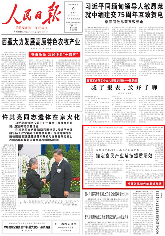 人民日報頭版關注吉林通化:錨定富民產業延鏈提質增效