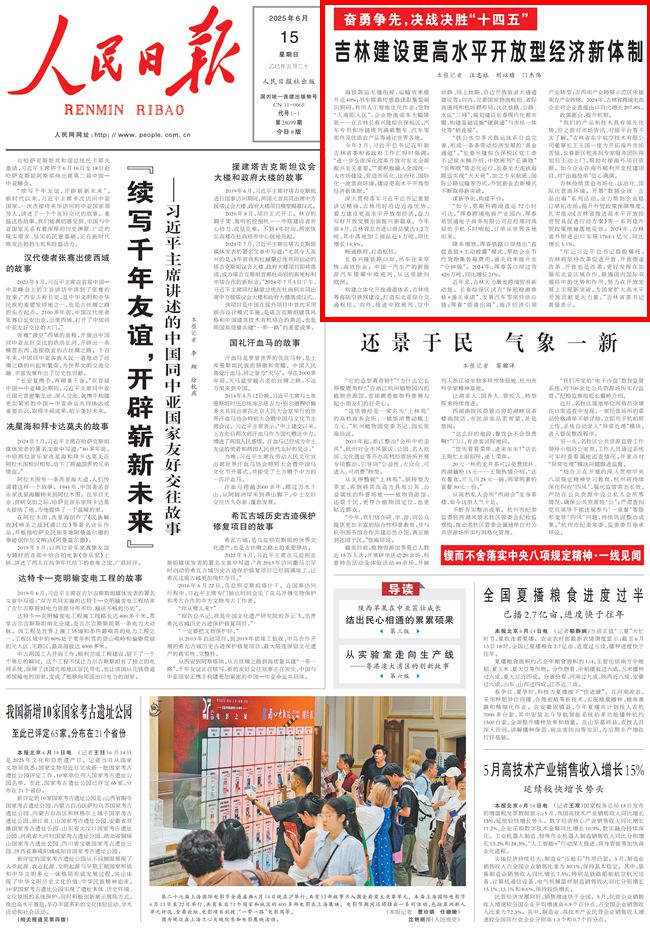 人民日報頭版關注:吉林建設更高水平開放型經濟新體制