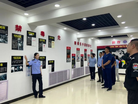 從6月初開始,白城市強戒所有序組織相關學校師生走進白城市禁毒教育基地,開展“零距離”體驗、“情景式”教育活動。民警從全球毒情形勢切入,結合案例展區中“個人沉淪-家庭破碎-社會陣痛”的真實軌跡,以及新型毒品展示區“奶茶”“跳跳糖”“巧克力”等新型毒品樣本,系統講解禁毒法律法規。精心制作的宣傳片,讓師生們仿若身臨其境,直觀地目睹了毒品的猙獰本質。講解結束后,學生代表紛紛參與拍照、簽名留念,用實際行動表達共同抵制毒品的堅定信念。