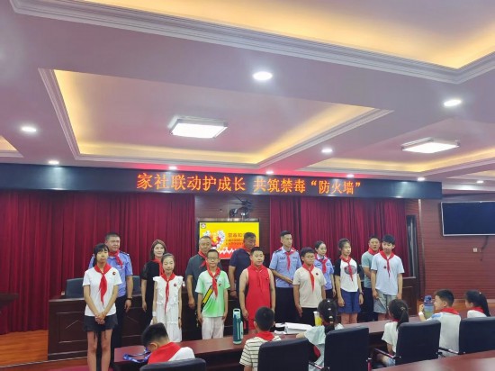 當日下午,白城市強戒所聯合共青團洮北區委、洮北區婦女聯合會、關心下一代工作委員會,共同舉辦“家社聯動護成長 共筑禁毒‘防火墻’”的主題禁毒宣傳教育活動。15名洮北區優秀少先隊員及其家長受邀參與。