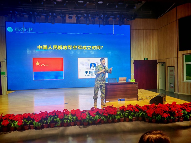 此外,張耀平教員還為學生們列舉了國內頂尖的航空航天院校及其辦學特色,并著重介紹了坐落于長春本地的空軍航空大學的歷史沿革和人才培養情況,讓有志于投身祖國航空航天的學生有了更加明確的努力方向?;顒蝇F場互動頻繁、掌聲不斷、氣氛熱烈。