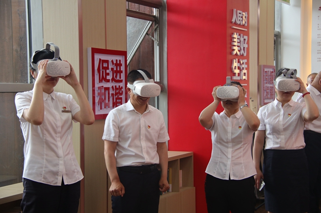 活動中,紅旗社區組織黨員利用VR技術“重走長征路”,黨員佩戴設備,“踏入”長征險境:過草地時,泥濘濕滑、風雪呼嘯,沉浸式感受紅軍征程艱辛;翻越雪山環節,模擬高寒缺氧環境,讓大家深切體悟紅軍“萬水千山只等閑”的無畏氣魄 。老黨員王師傅摘下VR設備,紅著眼眶說:“當年條件比這難千倍萬倍,紅軍硬是用雙腳闖過來,咱得把這份精神傳下去!”年輕黨員小陳也感慨:“課本里的長征,在VR里成了親身經歷,先輩們太不容易,我得更努力為黨和人民干事!”