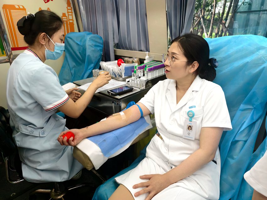 看著紅色的血液流入血袋,想到這些血液能為他人帶去健康和希望,參與獻血的醫務人員臉上都洋溢著自豪的微笑?!矮I血是希望能盡我的綿薄之力幫到有需要的人,作為醫務工作者我們更應該挺身而出,也希望大家都能參與進來?!币晃粎⑴c獻血的醫生表示。