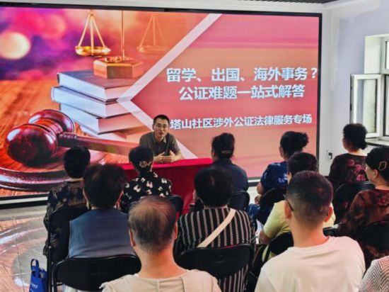 為切實解決社區居民在留學、出國及處理海外事務時面臨的公證難題,7月15日,長白縣委政法委縣司法局組織公證處工作人員走進塔山社區,開展了一場針對性強、實用性高的涉外公證主題宣傳活動,為即將到來的暑期留學、探親高峰提供精準法律服務。