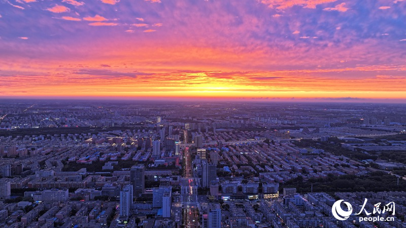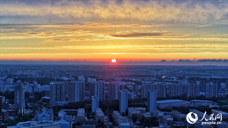 7月20日傍晚,長春市上空現大面積“火燒云”和雙彩虹景觀?;馃茖⑻炜杖境梢黄燃t,晚霞滿天,蔚為壯觀。