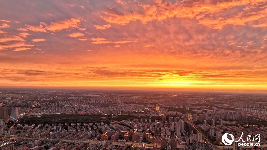 據悉,晚霞火燒云是日落時出現的赤色云霞,形成原因是陽光通過厚厚的大氣層,被大量的空氣分子散射的結果,是大氣變化的現象之一。