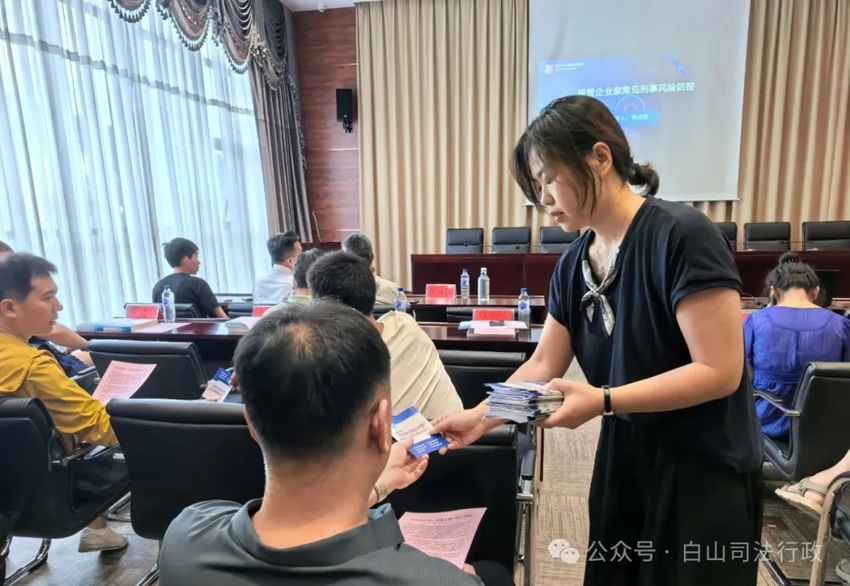 白山市司法局聯合白山市工商聯開展“法治賦能·合規共建”專題活動,針對不同企業類型推出定制化“普法清單”?;顒硬捎谩肮残耘嘤?個性輔導”雙軌模式,通過專家詳解相關法律法規和現場發放《吉林省“法治護航營商環境”精品法治課目錄(普法菜單)》等方式,實現企業訴求即時響應。