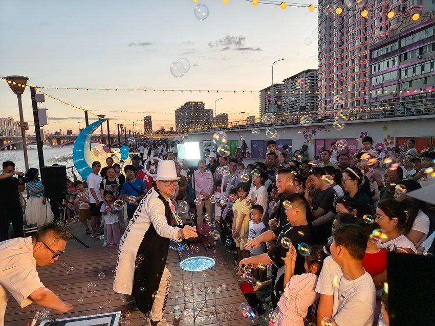 這里集結了豐富的文化業態:藝術活動矩陣、超有氛圍感的“布爾星畔之戀”打卡點、特色祈福燈市以及創意美陳裝置。更有特色商鋪、清涼水吧、網紅冷飲和兒童娛樂設施點綴其間,旨在成為青年群體的潮流社交場所與共創平臺,為延吉文旅消費注入新活力。