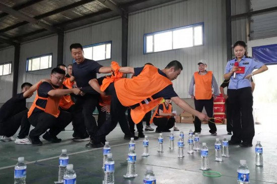青年干警素質提升,既要“單兵作戰”能力,更需“協同攻堅”本領。協作項目“水到渠成”將協作場景融入游戲,參賽隊員蒙眼將水快速運送到終點,信任與團結將是本場游戲最大的收獲,緊密配合傳遞,培養團隊的默契。團隊項目“攜手奮進”中,第一個隊員跑向對岸與第二名隊員“會師”,兩人再攜手跑向第三名隊員,隊伍不斷壯大,力量不斷匯聚,隊員們各司其職又相互扶持,大家步調一致,一起沖向終點。加油助威的吶喊此起彼伏,“比學趕超”氛圍濃厚,青春活力盡數釋放,團隊精神助力青年成長。