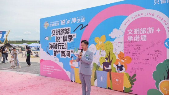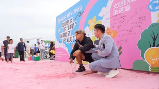 當天,肆季南河岸線公園內人頭攢動。休閑漫步的市民與駐足賞景的游客,不約而同被一面“文明旅游承諾墻”吸引?!皫ё呋貞?,留下潔凈”“垃圾不落地,城市更美麗”……筆尖沙沙作響間,承諾墻上漸漸布滿了樸素真摯的寄語?!爸皫Ш⒆觼硗娴臅r候,總會備好垃圾袋,既能保護環境,又能給孩子樹立一個好的榜樣?!笔忻耖Z女士說,“在承諾墻簽下名字,就是給自己立個規矩。希望大家都能做文明旅游的踐行者,為維護城市文明添磚加瓦?!?/p>