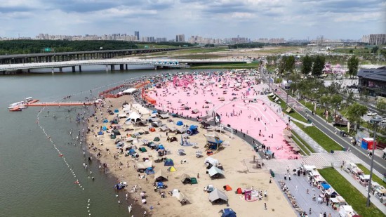陽光下,肆季南河岸線公園的粉色沙粒折射出城市幸福的光芒;伊通河水波輕漾,勾勒出游客夏日最動人的輪廓。如今,這片水域憑借獨特景致躍升為長春頂流打卡地。