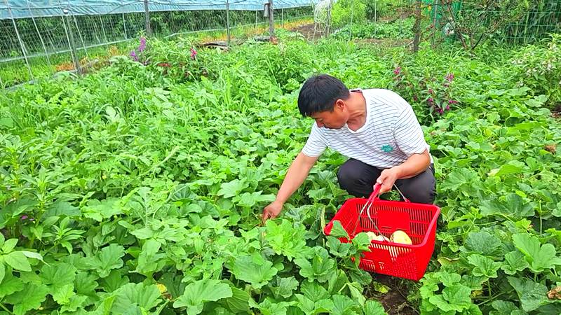 基地負責人張玉成表示,今年受氣候影響,瓜果成熟普遍較去年晚幾天。香瓜、西瓜這幾天陸續采摘,預計產量能有2000余斤,8月下旬黃桃、葡萄大棚也即將開園,年產量預計在2萬斤左右。為確保瓜果長勢良好,張玉成雇傭本地工人開展除草、剪枝等工作。