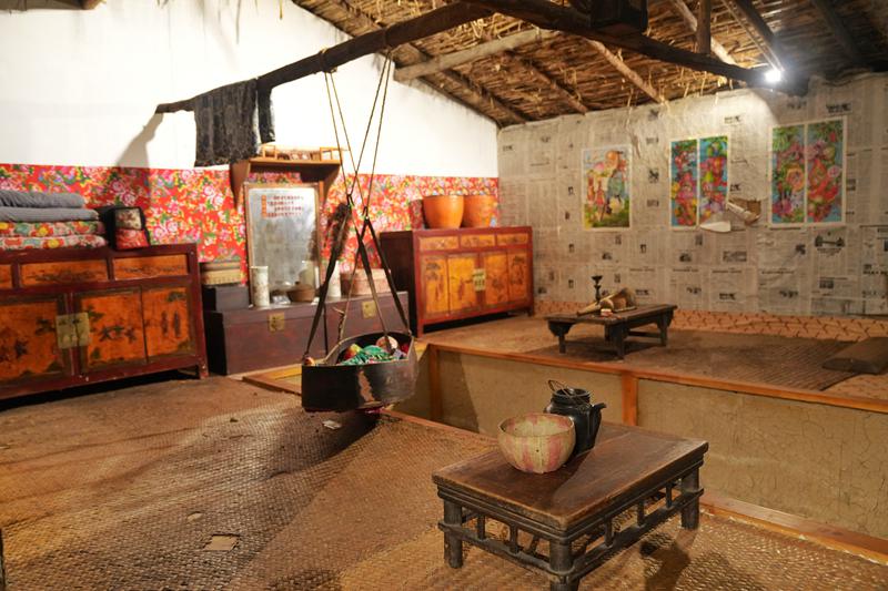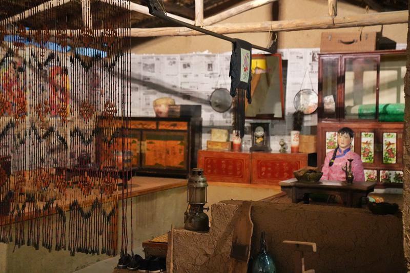而在其不遠處,墻上的12幅圖片展示的是“關東十二大怪”:黃土打墻墻不倒、野獸骨頭欻起來、窗戶紙糊在外、姑娘叼個大煙袋、大缸小缸漬酸菜、養活孩子吊起來、馬拉爬犁跑得快、小伙翻墻狗不咬、冬包豆包講鬼怪、狗皮帽子頭上戴、黃土房子籬笆寨、外出要把糞筐帶。
