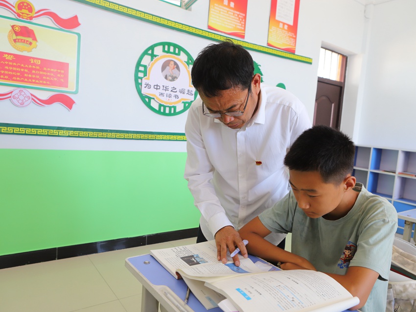 課堂是夏友好最熱愛的陣地。他總愛坐在教室后排,兩本厚厚的聽課筆記,密密麻麻記錄著教學細節。課后,他與年輕教師促膝長談,分享教學心得;課間,他會把基礎薄弱的學生叫到辦公室,耐心講解難題。在他的帶動下,校園里掀起了義務輔導的熱潮,近500人次的課后指導,讓知識的光芒照亮每個孩子的眼睛。學生的身心變化明顯、學習熱情高漲,教學成果喜人:中考工作中,2023年參考人數27人,升入25人;2024年參考人數24人,升入中學20人;2025年,參考人數25人,升入中學24人。